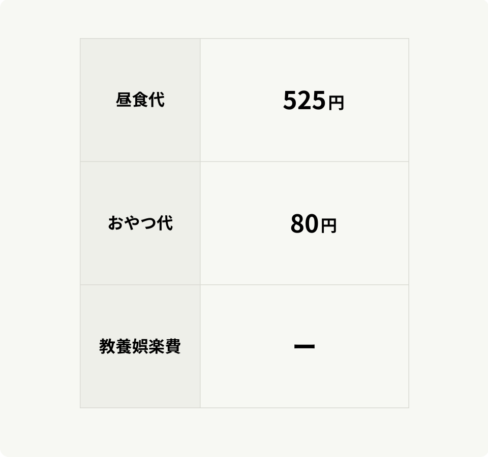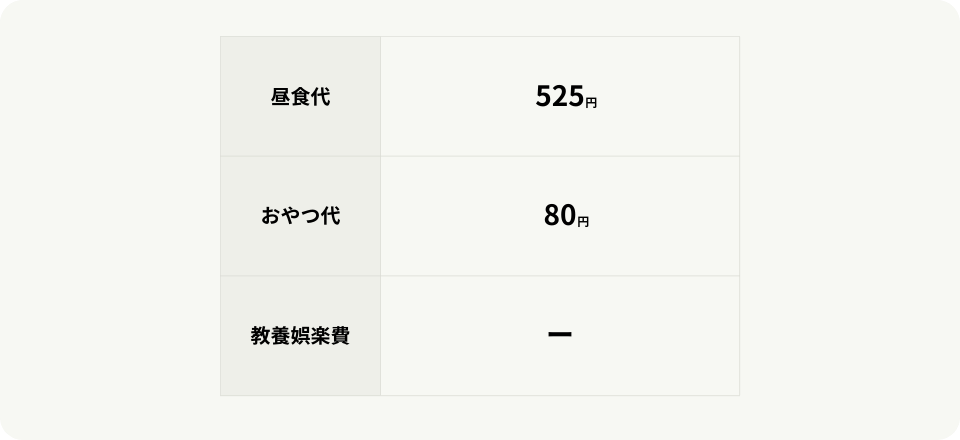 • 日用品費(個人で使用する物品)、おむつ(個人で利用された分)等、実費を頂くことが妥当と考えられる費用は、実費となります。