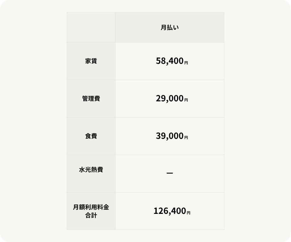 ※月途中における入居、退居は月を30日として日割り計算とします。
