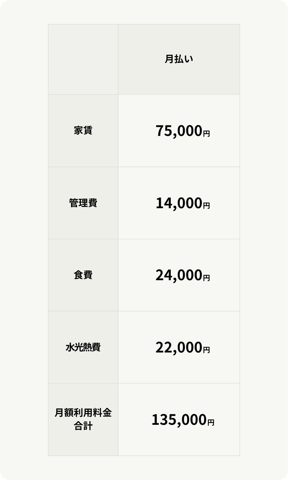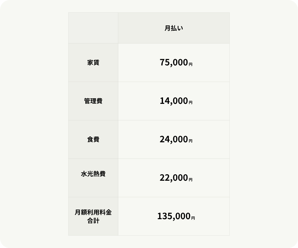 ※月途中における入居、退居は月を30日として日割り計算とします。
