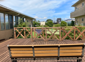 ウッドデッキに腰掛け、青空や季節の移ろいを感じられる中庭は、むつみの人気スポットです。天気の良い日は日向ぼっこをしたり、風を感じながら談笑したりと、ゆっくりとした時間が流れます。緑に囲まれた穏やかな景色を眺めるひとときは、心を落ち着かせ、気分転換にもぴったり。自然と触れ合えるこの空間が、日々の暮らしにやさしい彩りを添えています。
