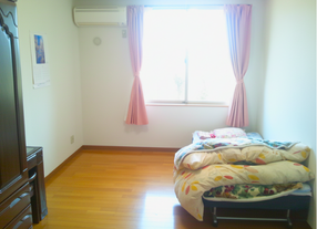 明るい日差しが差し込む個室は、落ち着いて過ごせる大切なプライベート空間です。エアコンやカーテンが備え付けられ、馴染みの家具を持ち込むことで「自分らしくくつろげるお部屋」に整えられます。窓から見える穏やかな景色は、毎日の気持ちを自然と明るくしてくれるもの。環境の変化に戸惑いやすい方でも安心して過ごせる、温かさとやさしさに包まれた居室です。