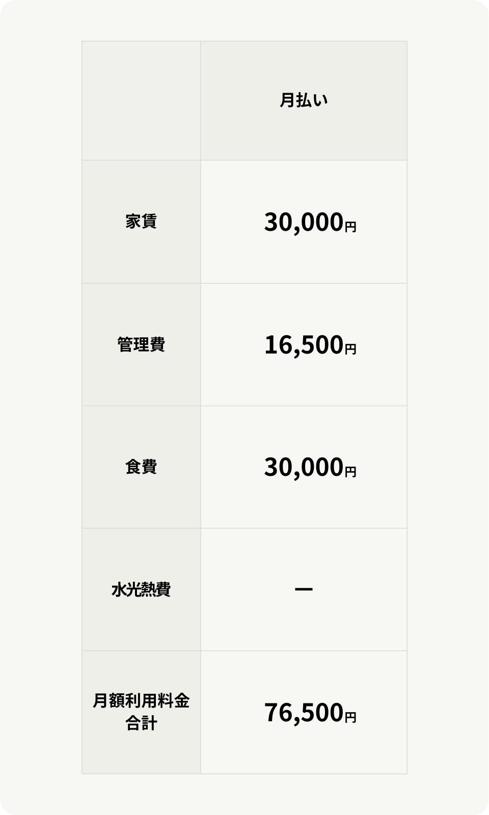 ※月途中における入居、退居は月を30日として日割り計算とします。