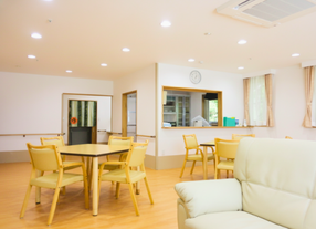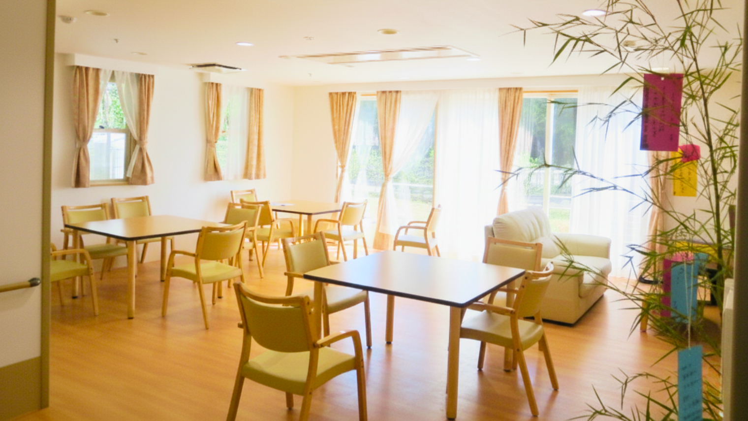 明るく開放的な食堂は、毎日の暮らしをやさしく包む憩いの場所です。自然光が差し込む落ち着いた空間で、温かい食事を囲むことで、自然と笑顔や会話が生まれます。スタッフがそっと寄り添いながら、ご入居者様お一人おひとりのペースに合わせてサポートするため、安心してゆったり過ごせる時間が流れています。家庭的なぬくもりを大切にした、よしおからしい団らんのひと時をお届けします。