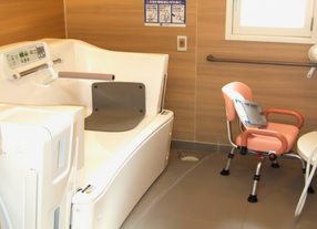車椅子の方でも安全にご入浴いただける機械浴を完備しています。スタッフがマンツーマンで寄り添い、移動から湯船につかるまで丁寧にサポート。短期間のご利用でも、リラックスしながら普段どおりの清潔で快適な時間をお過ごしいただけます。安心感のある入浴は、多くの方に喜ばれているサービスです。