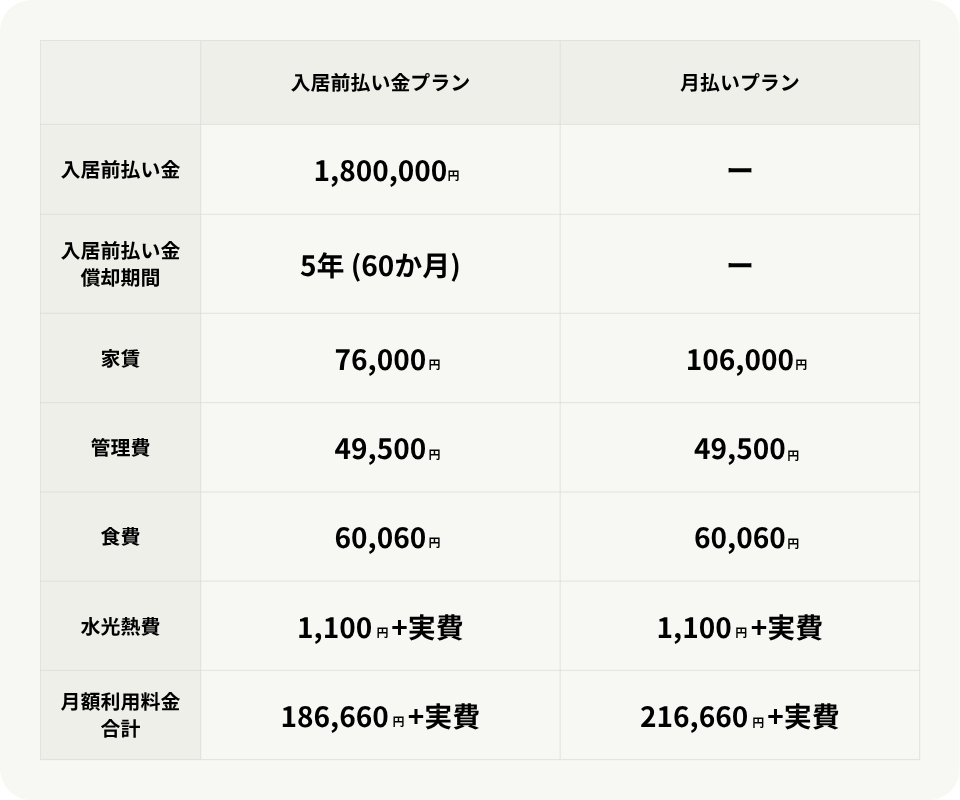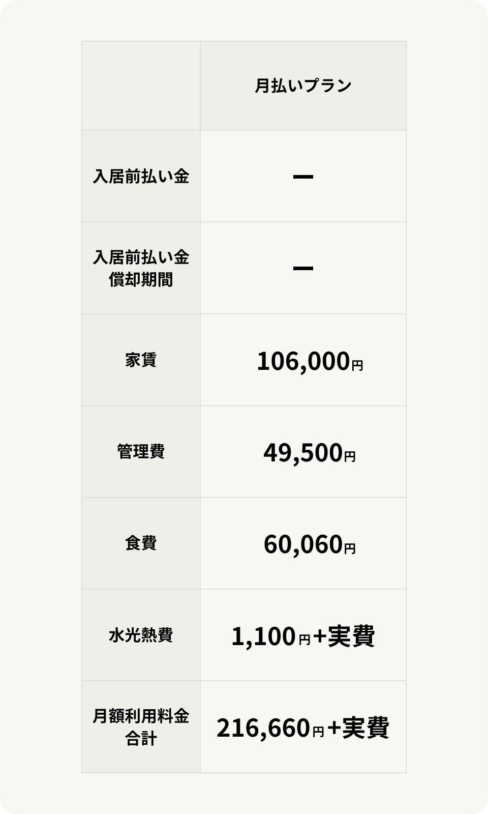 ※共用部分の水道料金として1,100円を徴収します。居室部分の電気料金は個別計量にて実費を徴収します。