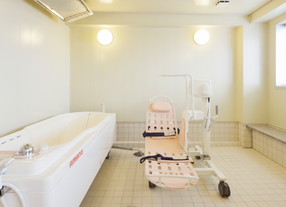 介護度の高い方にも安心してご利用いただけるよう、特殊浴槽(機械浴槽)を完備しています。スタッフが常に寄り添い、入浴前後の移動や姿勢保持も丁寧にサポート。明るく清潔な浴室で、ゆったりと湯に浸かりながら心身ともにリフレッシュできます。安全と快適を両立した入浴環境が整っています。
